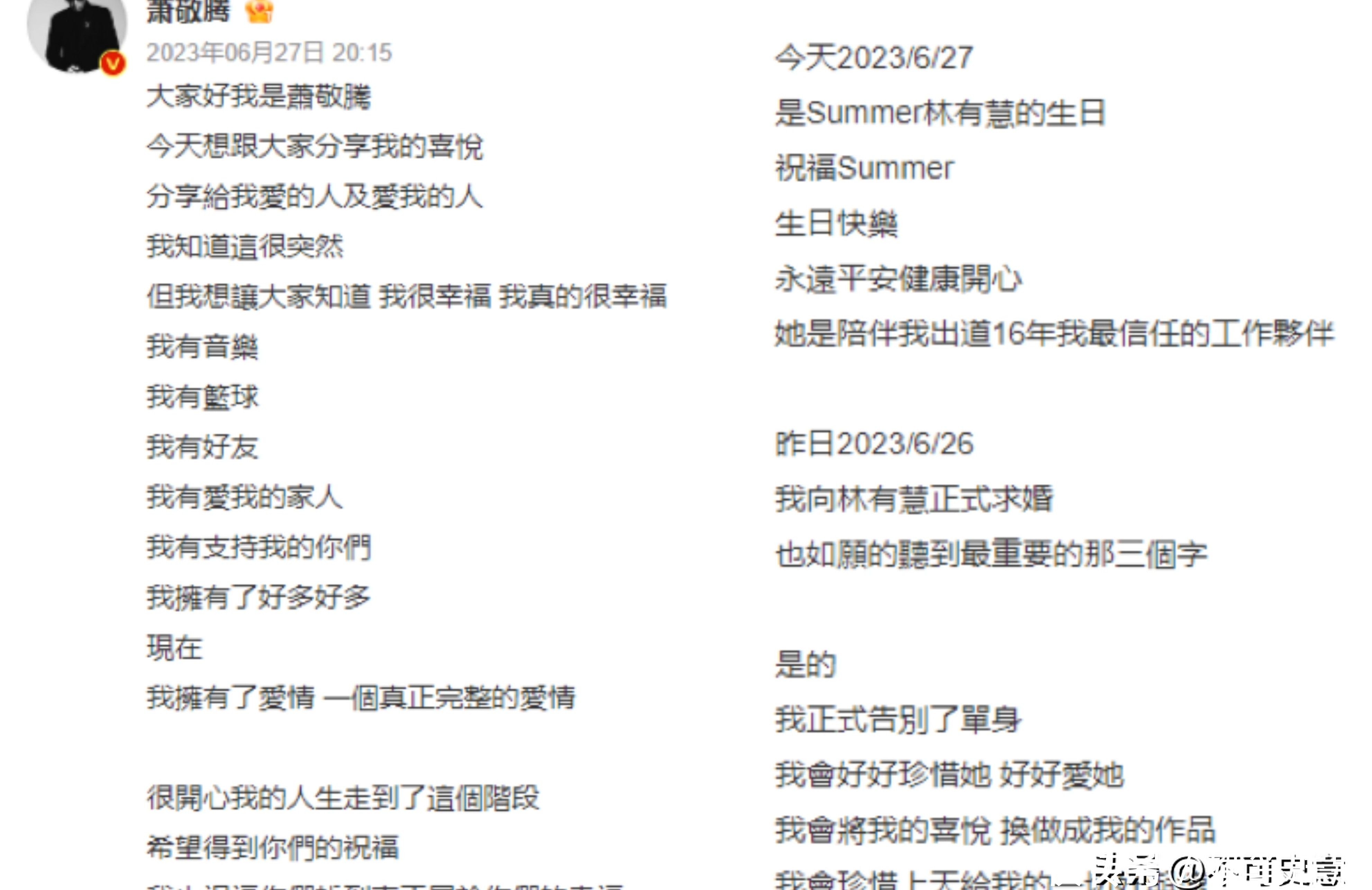 72023年6月,萧敬腾在社交平台晒出求婚成功的画面,瞬间引爆全网讨论。